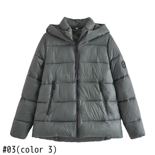 CNlalaxury 秋の女性のフード付き綿の服長袖スタンドカラー無地ジャケットジップポケット上着暖かいジャケットトップ ロング コットン オータム 秋物 ソリッドカラー