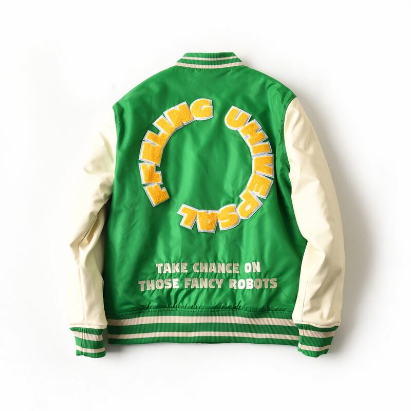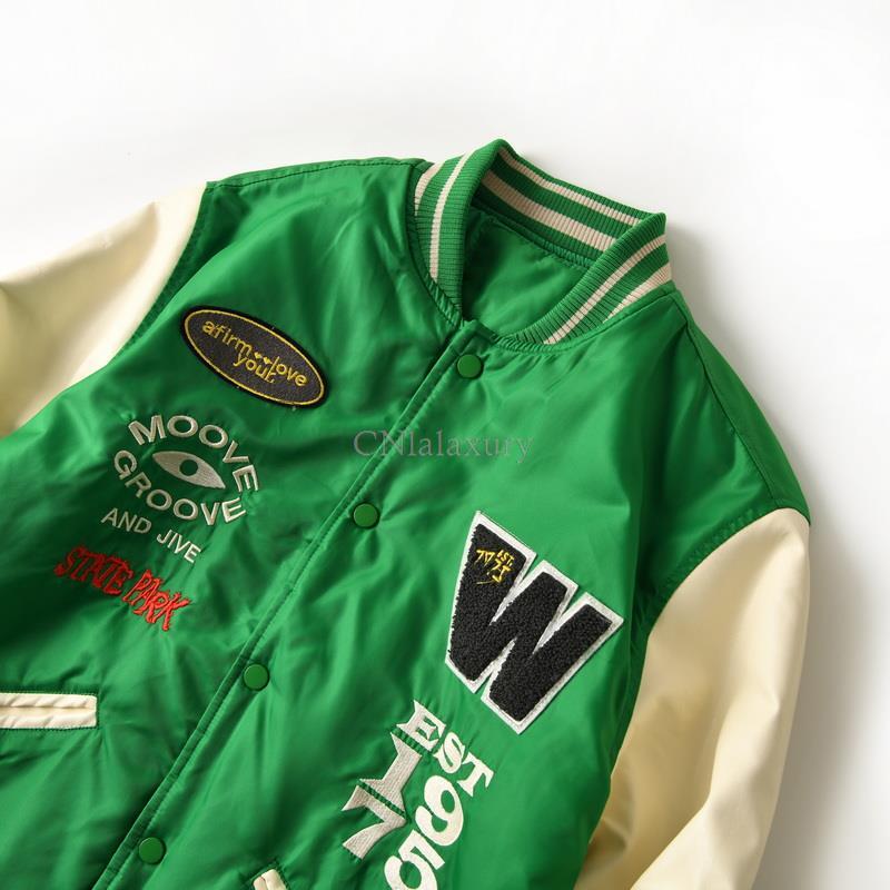 CNlalaxury 秋冬メンズ野球ジャケットグリーンステッチボンバージャケット長袖レトロ上着トップ男性 ロング オータム 秋物 ウィンター 冬物