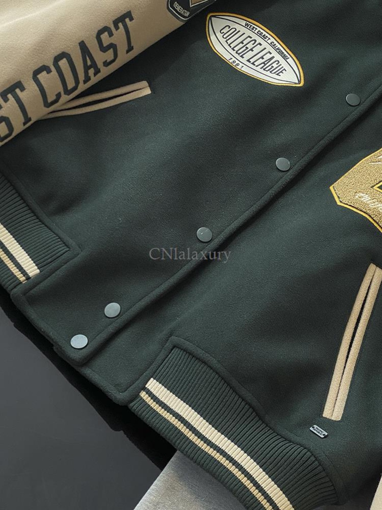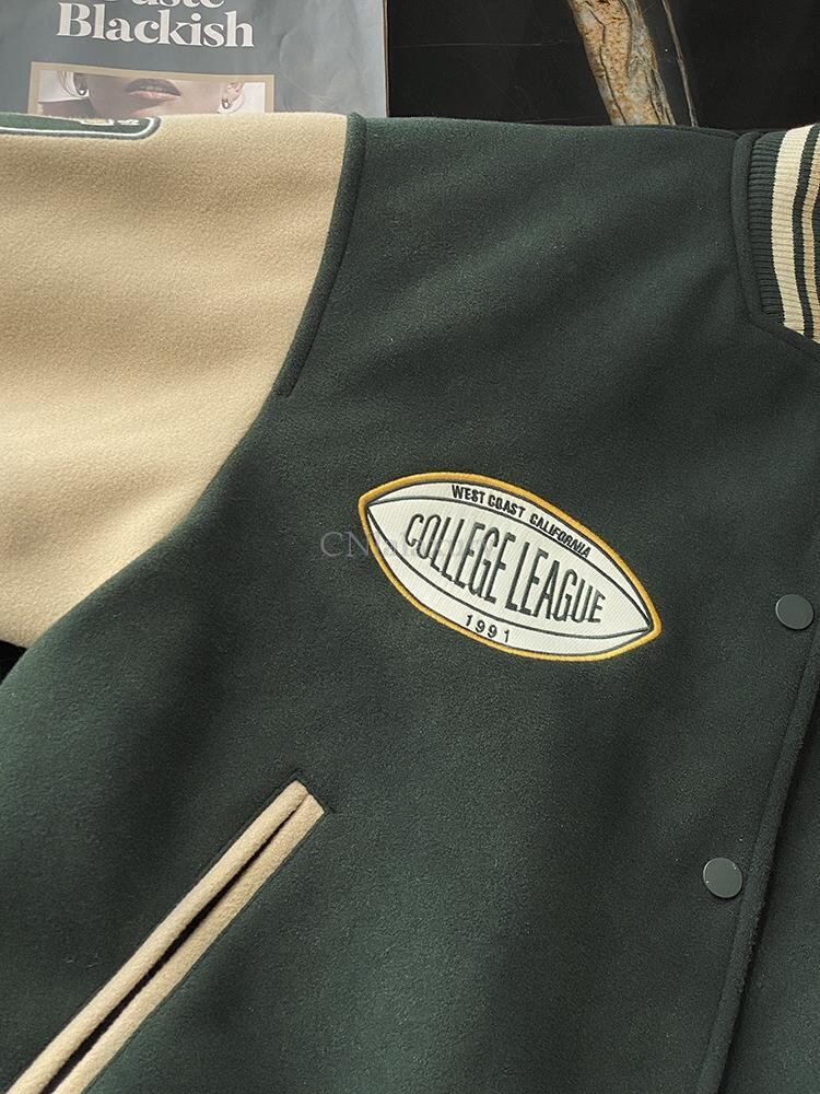 CNlalaxury 秋冬女性アメリカ長袖野球ジャケットスプライシング刺繍ジャケットポケット上着トップ ロング レッド オータム 秋物 ウィンター 冬物