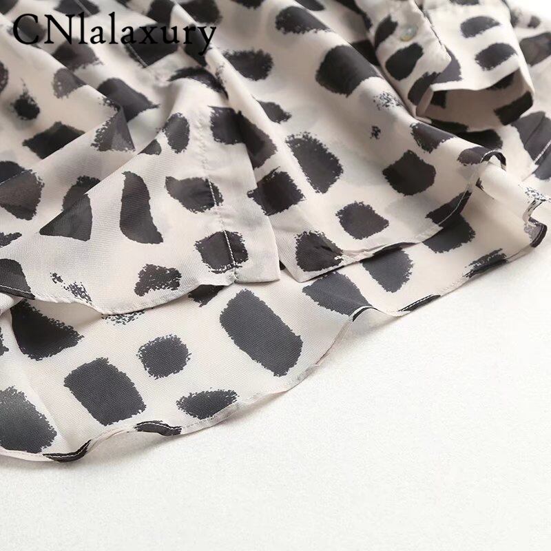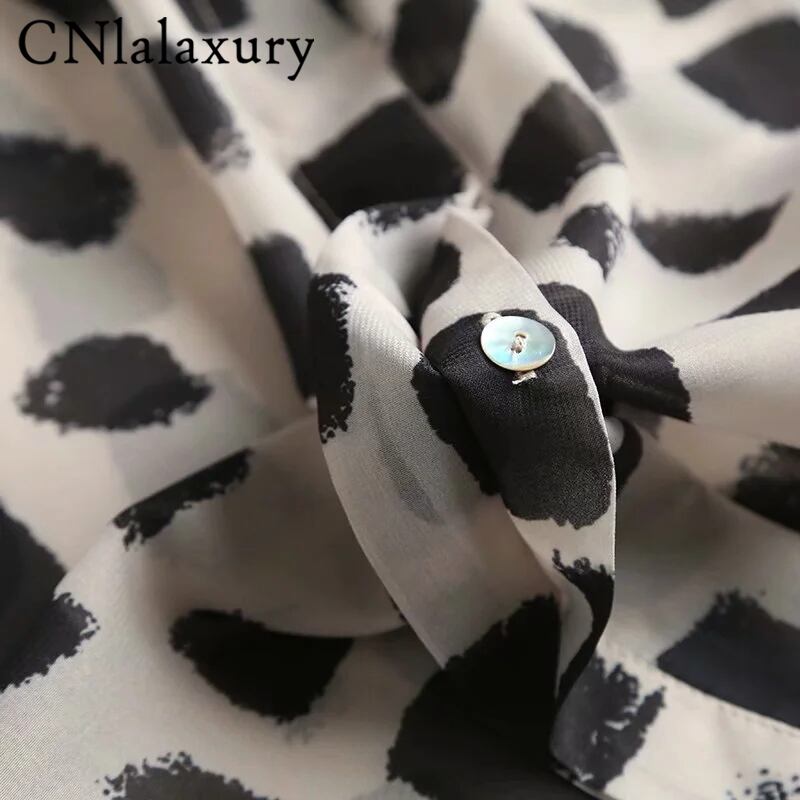 CNlalaxury 夏女性斑点プリントシャツ長袖ハーフパースペクティブシックなブラウスオフィスレディトップ ロング サマー 夏物 会社 学校 通勤や通学にも