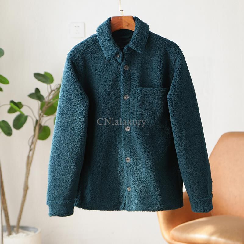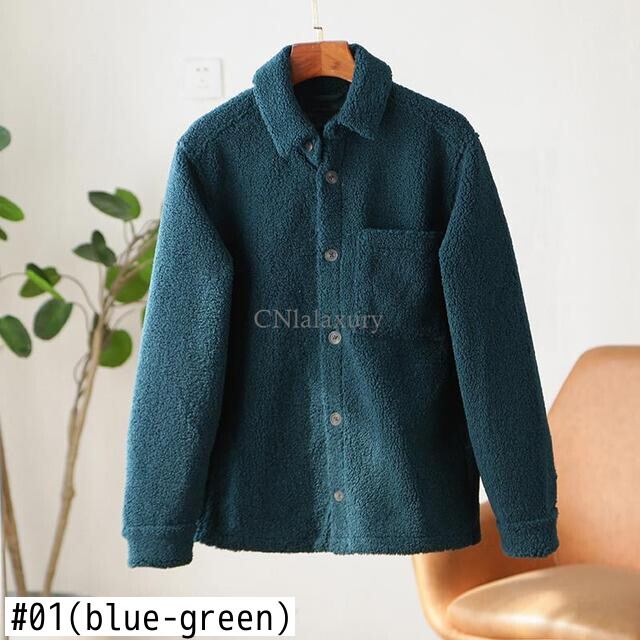 CNlalaxury 秋冬メンズホワイトラムウールジャケットシンプルな長袖フリースジャケット無地ポケットアウター男性 ロング オータム 秋物 ウィンター 冬物 ソリッドカラー