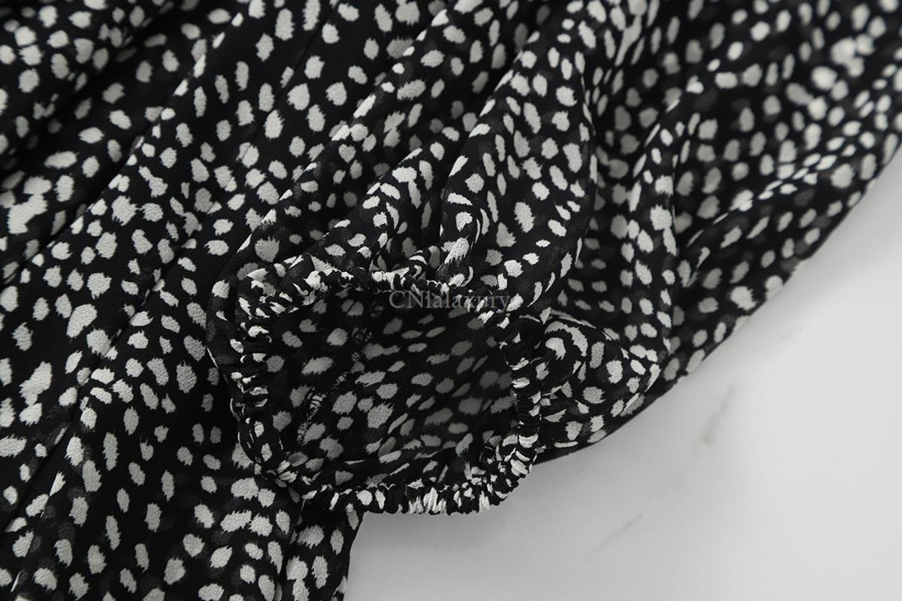 CNlalaxury 夏の女性の印刷ドレス長袖ベルト装飾ラペルドレスミニスカート ロング サマー 夏物 ハーネス