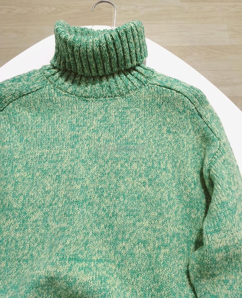 CNlalaxury 秋冬女性グリーンニットセーター ped ショルダー長袖ルーズタートルネックプルオーバーセーター ロング オータム 秋物 ウィンター 冬物
