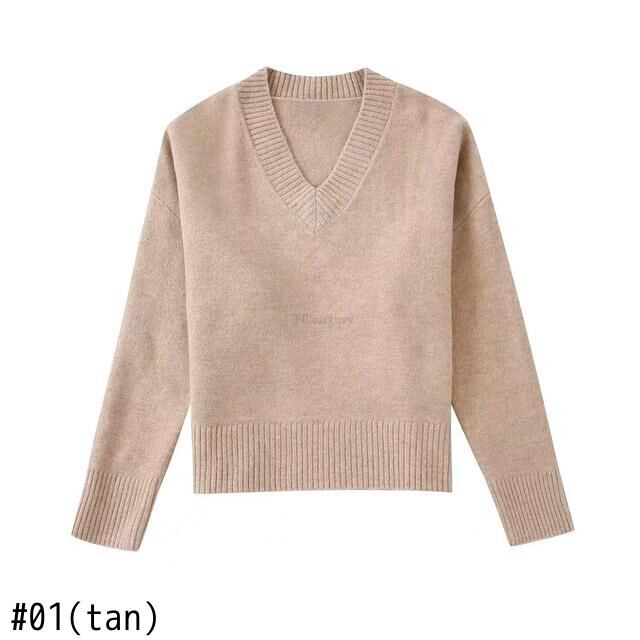 CNlalaxury 秋冬女性 V ネックルーズセータータン長袖ニットセーターシンプルな無地プルオーバートップ ロング オータム 秋物 ウィンター 冬物 Vネック ソリッドカラー
