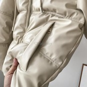 CNlalaxury 秋冬女性黒の上着フェイクレザージャケット長袖フード付きパッド入り服暖かいジャケット ロング ブラック オータム 秋物 ウィンター 冬物 ファー