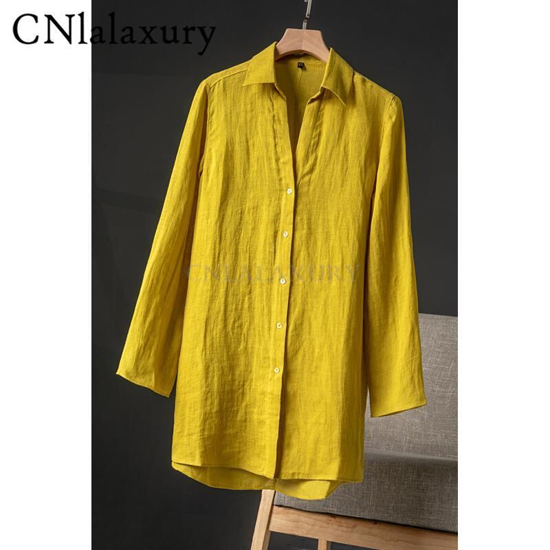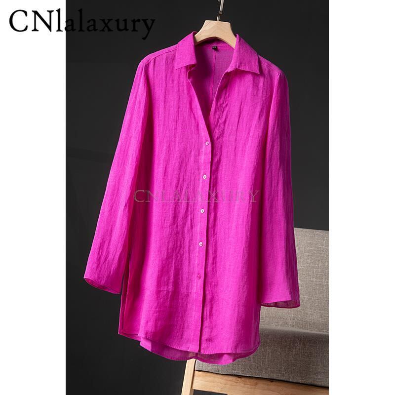 CNlalaxury 女性夏 V ネックルーズリネンブレンドシャツ長袖ローズレッドブラウスオフィスレディ無地トップ ロング サマー 夏物 Vネック ソリッドカラー 会社 学校 通勤や通学にも