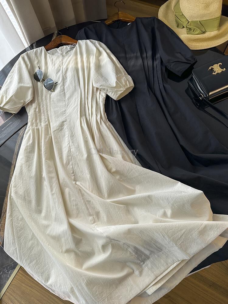 CNlalaxury 無地 O ネック マキシドレス シックなドレープウエスト 半袖 パーティードレス オフィスレディ ショート ハーフスリーブ Oネック ソリッドカラー 会社 学校 通勤や通学にも | shy