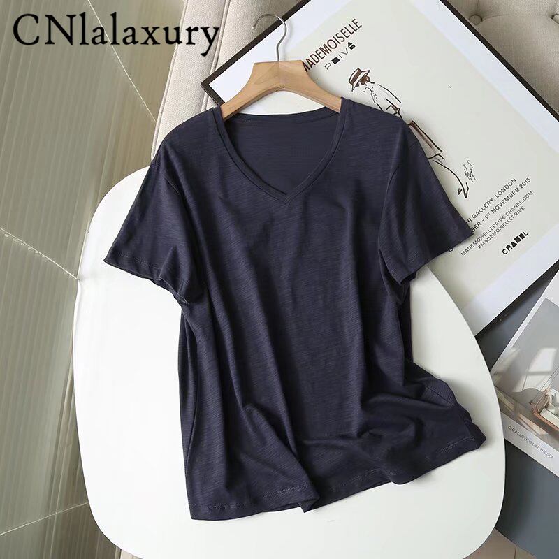 CNlalaxury サマーウーマン Vネック 無地 Tシャツ ベーシック 薄手 半袖 サンザシ レッド シンプル トップス ショート ハーフスリーブ 夏物 ソリッドカラー
