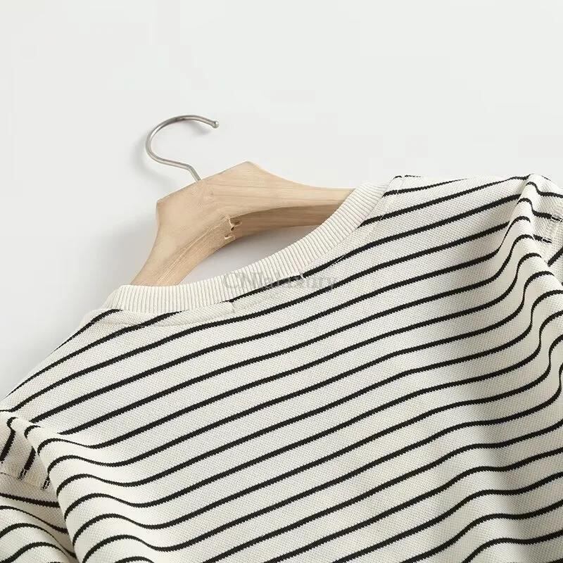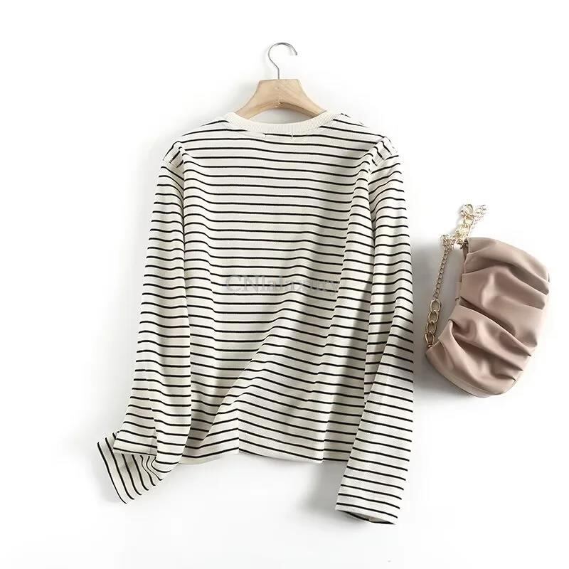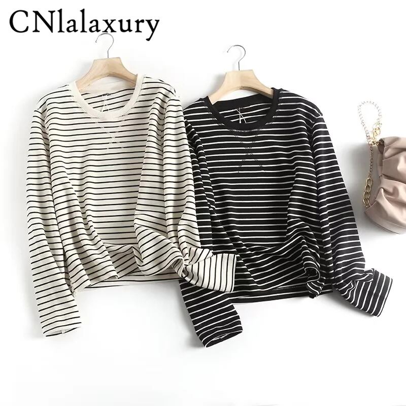 CNlalaxury レディース 春 秋 ストライプ Tシャツ ラウンドネック シンプル プルオーバー 長袖 Oネック Tシャツ 通勤 ベーシック トップス ロング スプリング 春物 オータム 秋物 | shy