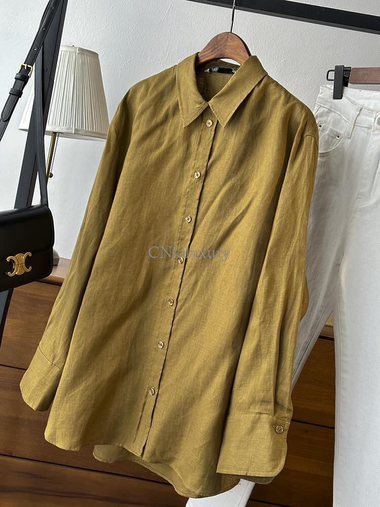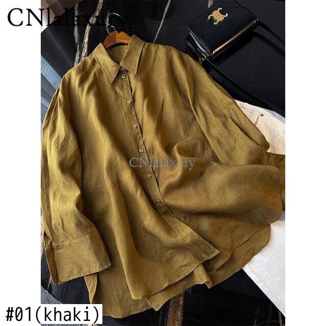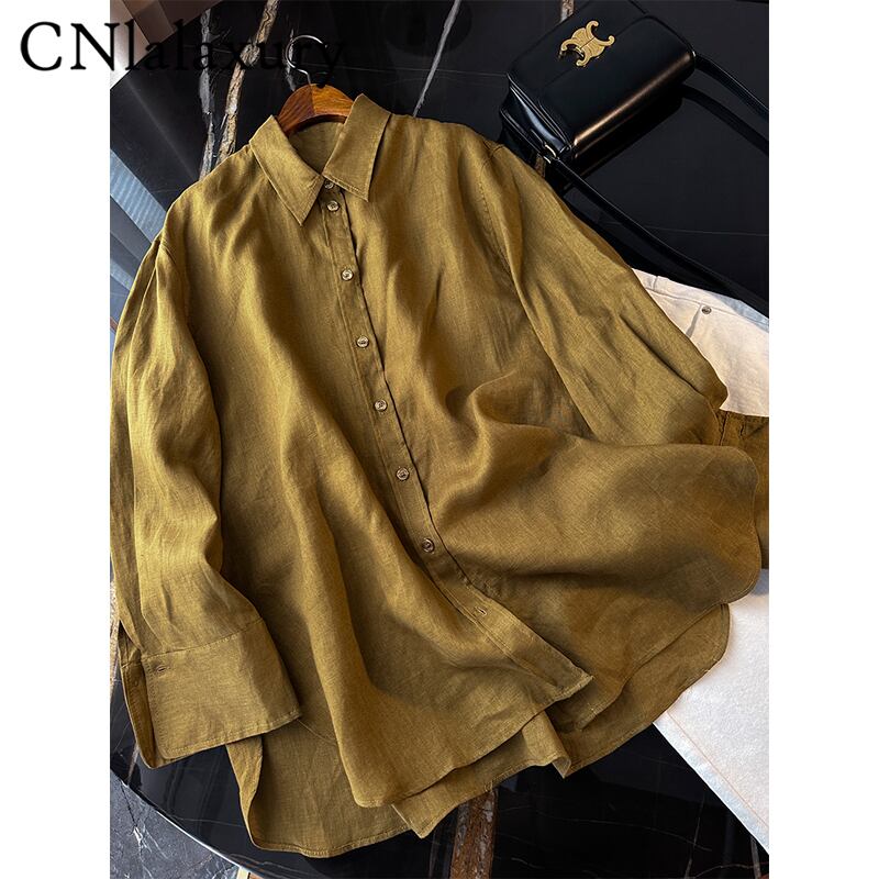 CNlalaxury 春夏女性ルーズシャツオレンジ長袖ボタンブラウスシックなオフィスレディトップス非対称ブラウス ロング スプリング 春物 サマー 夏物 会社 学校 通勤や通学にも