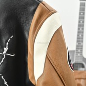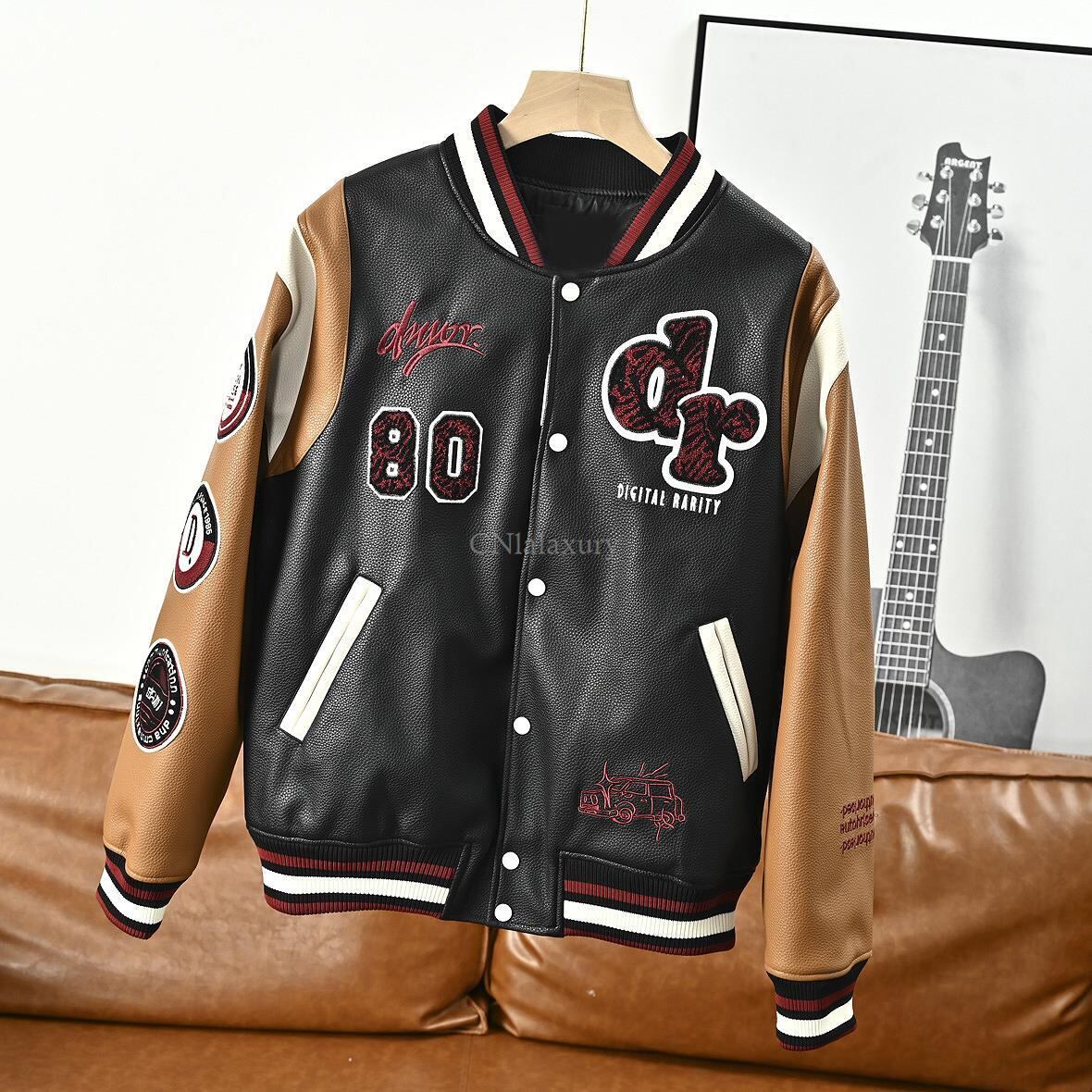 CNlalaxury 秋冬メンズアメリカンフェイクレザージャケット長袖対照的な色ストリートパイロット上着男性 ロング オータム 秋物 ウィンター 冬物 ファー