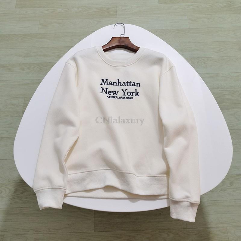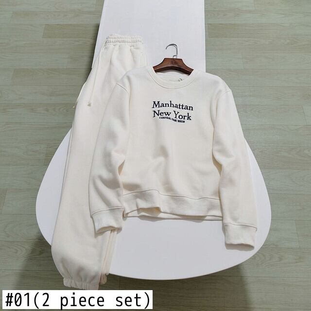 CNlalaxury 秋冬女性ベージュ刺繍スウェットシャツ長袖プルオーバーラウンドネック無地トップスポーツウェア ロング レッド オータム 秋物 ウィンター 冬物 Oネック ソリッドカラー