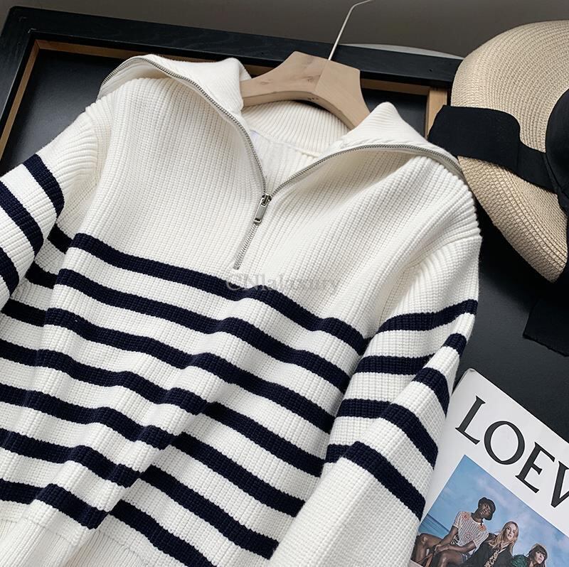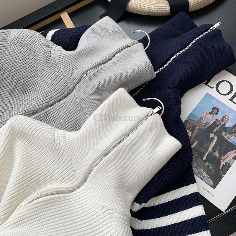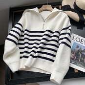 CNlalaxury 秋冬女性ラペルストライプセーター長袖ウールブレンドニットセータープルオーバー ロング オータム 秋物 ウィンター 冬物