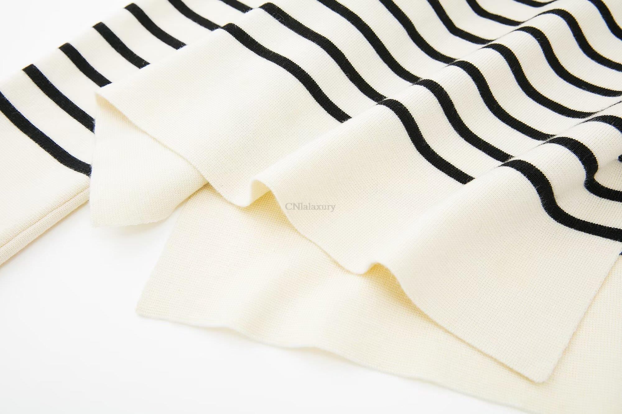 CNlalaxury 女性秋冬ストライプセーター長袖シンプルなニットセータープルオーバー V ネックトップジャンパー ロング オータム 秋物 ウィンター 冬物 Vネック