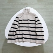 CNlalaxury 秋冬女性スタンドカラーストライプセーター長袖ルーズニットプルオーバーセータージャンパー ロング オータム 秋物 ウィンター 冬物