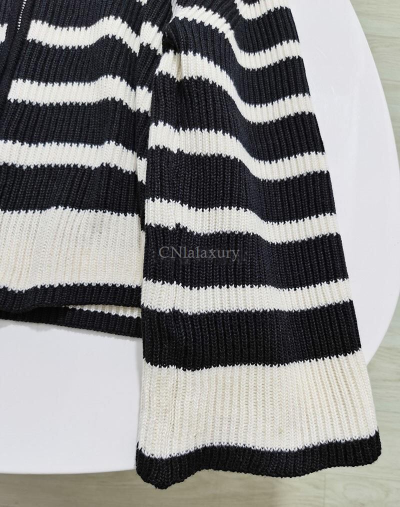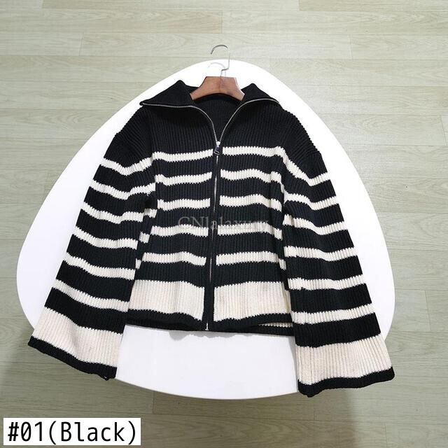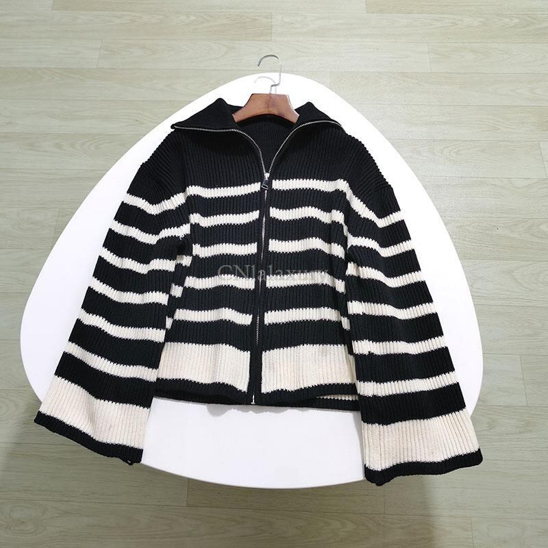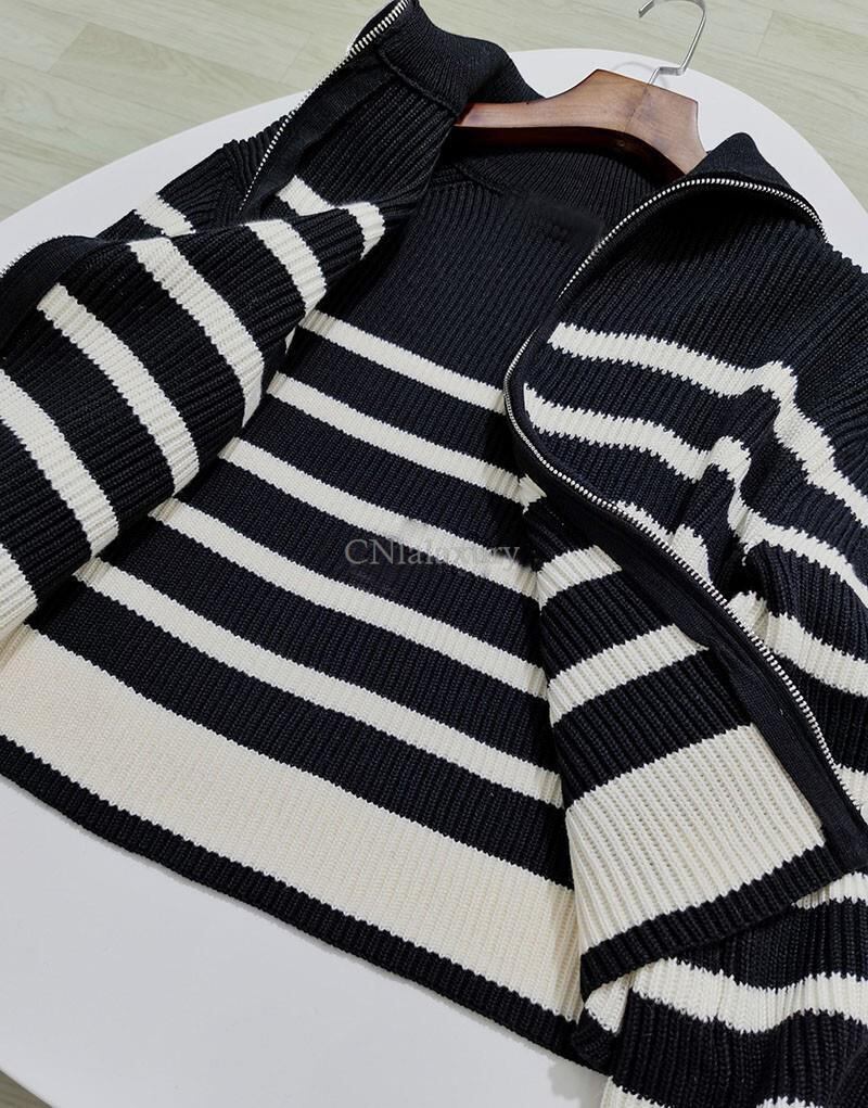 CNlalaxury 秋冬ニットセーター女性ブラックホワイトストライプセーター長袖ルーズカーディガン ロング オータム 秋物 ウィンター 冬物