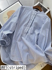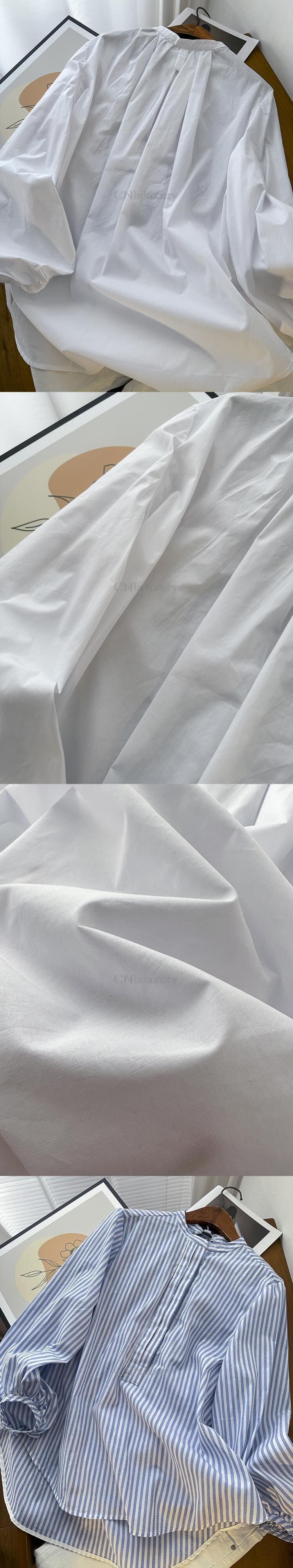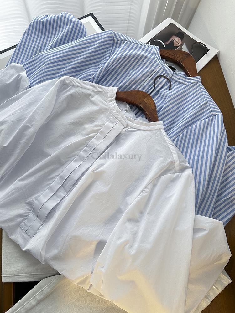 CNlalaxury 春夏白単にブラウス女性 O ネックルーズランタンスリーブトップオフィスストライプブラウス ホワイト スプリング 春物 サマー 夏物 Oネック シンプル 会社 学校 通勤や通学にも | shy