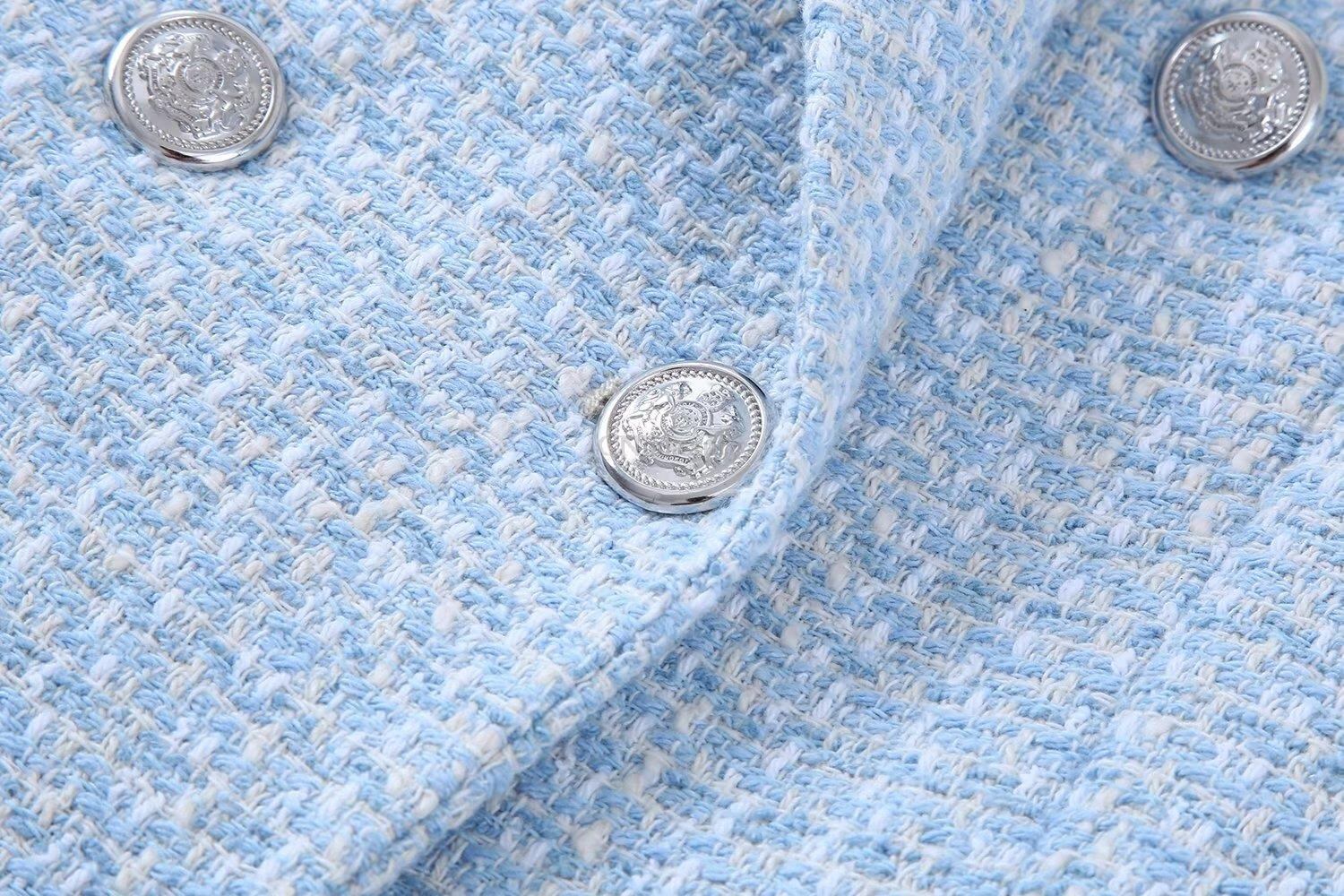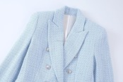 CNlalaxury 秋冬女性ブルーテクスチャードブレザー長袖ダブルブレスト通勤トップシックレディアウターウェア ロング レッド オータム 秋物 ウィンター 冬物