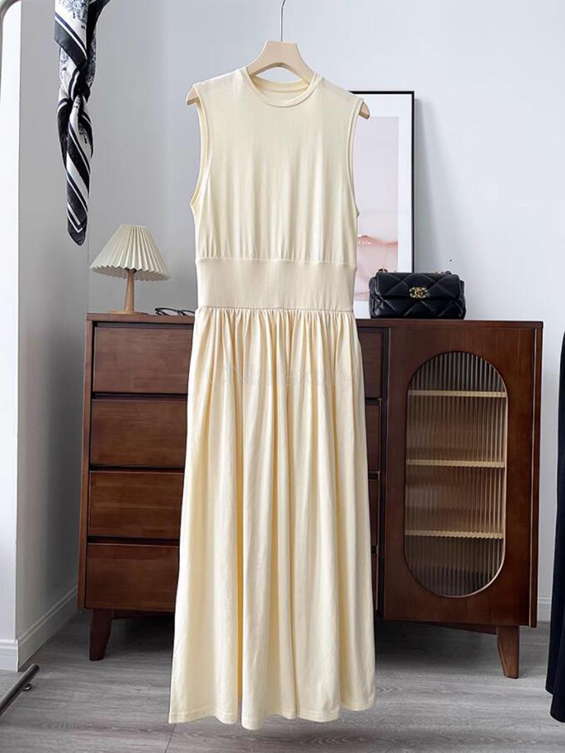CNlalaxury レディース サマー ノースリーブ ベスト ドレス 無地 シンプル 万能 ロングドレス シック 夏物 ソリッドカラー