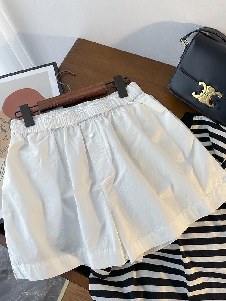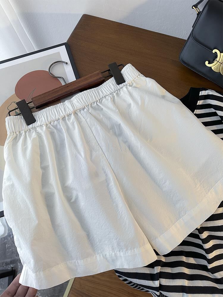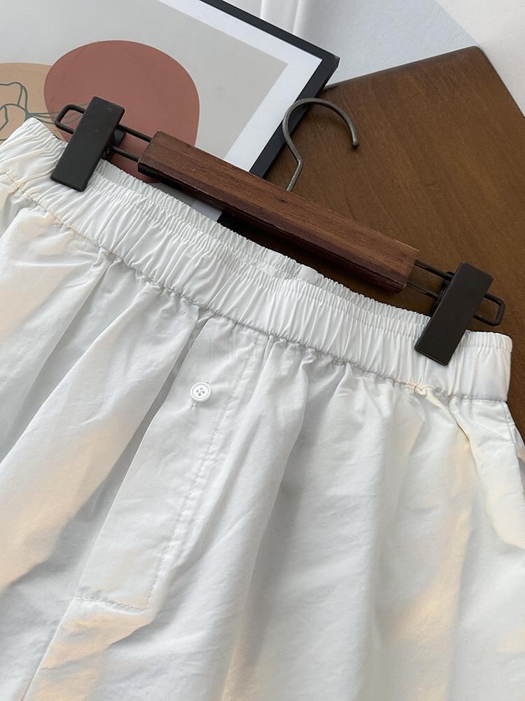 CNlalaxury 春夏 レディース 無地 ウエストゴム ワイドレッグショーツ シンプル 万能ボトムス シック エラスティック 伸縮 スプリング 春物 サマー 夏物 ブルマー ワイドパンツ ソリッドカラー