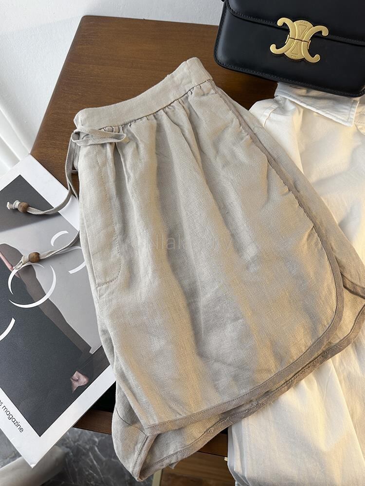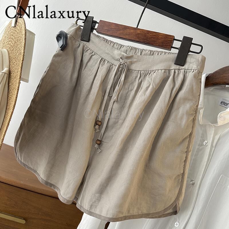CNlalaxury レディース 春夏 伸縮性 ひも リネン ショーツ ゆったり ワイドレッグ 万能 シンプル ボトム シック エラスティック スプリング 春物 サマー 夏物 ブルマー ワイドパンツ | shy