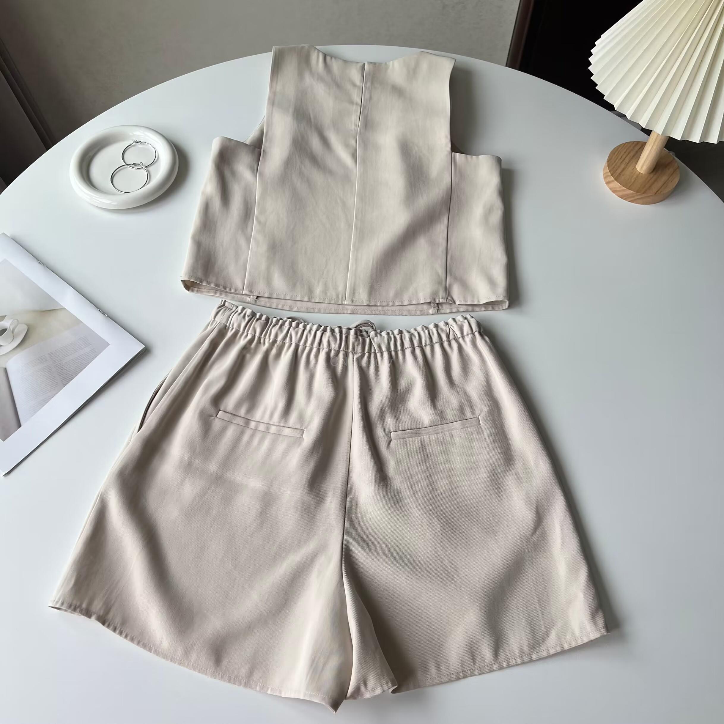 CNlalaxury レディース サマー ノースリーブ ベスト レーシング ワイドレッグ ショーツ スーツ シンプル シック 通勤 セット 夏物 ブルマー ワイドパンツ