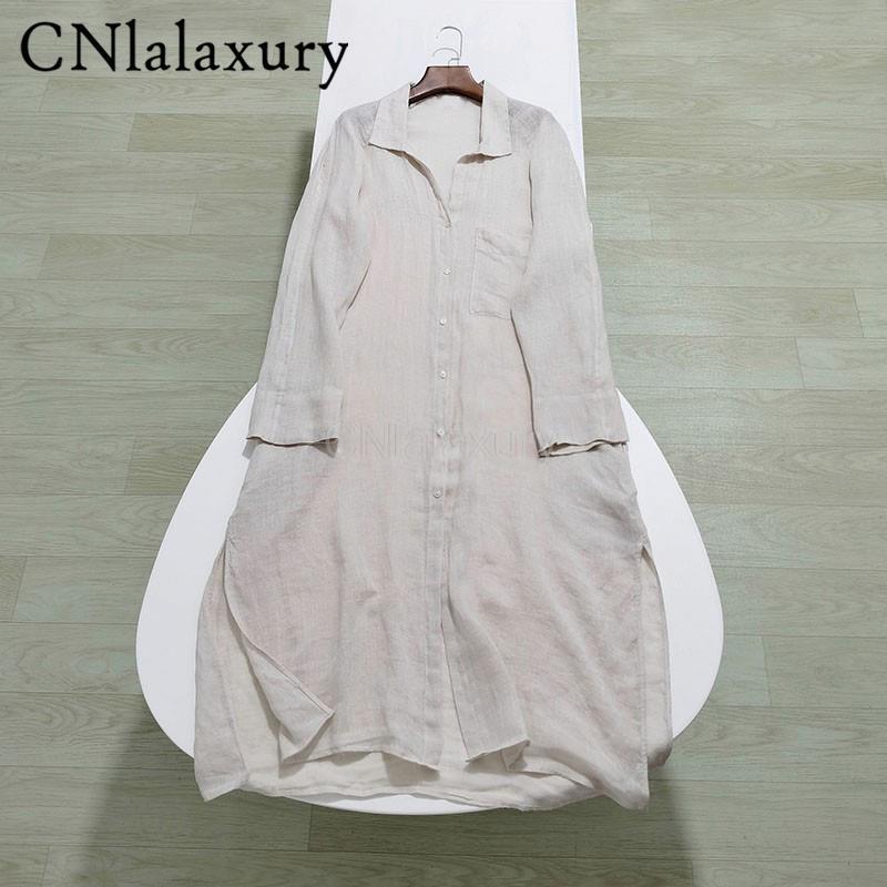 CNlalaxury 春夏リネンシングルブレストボタンシャツドレスルーズロングドレスシック スプリング 春物 サマー 夏物