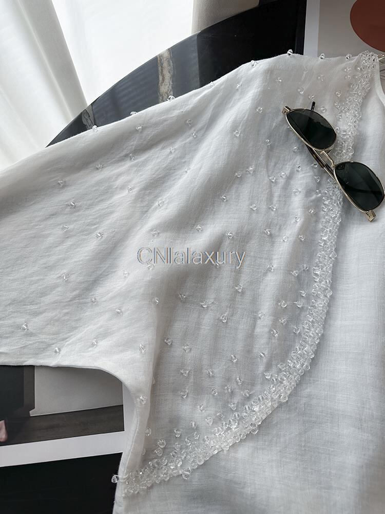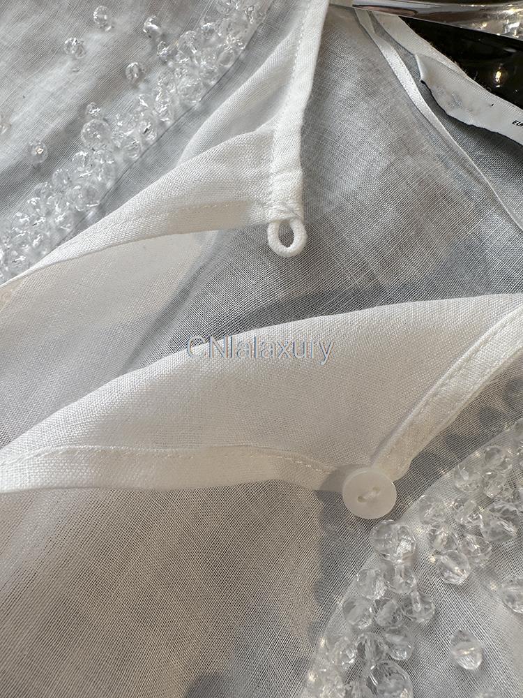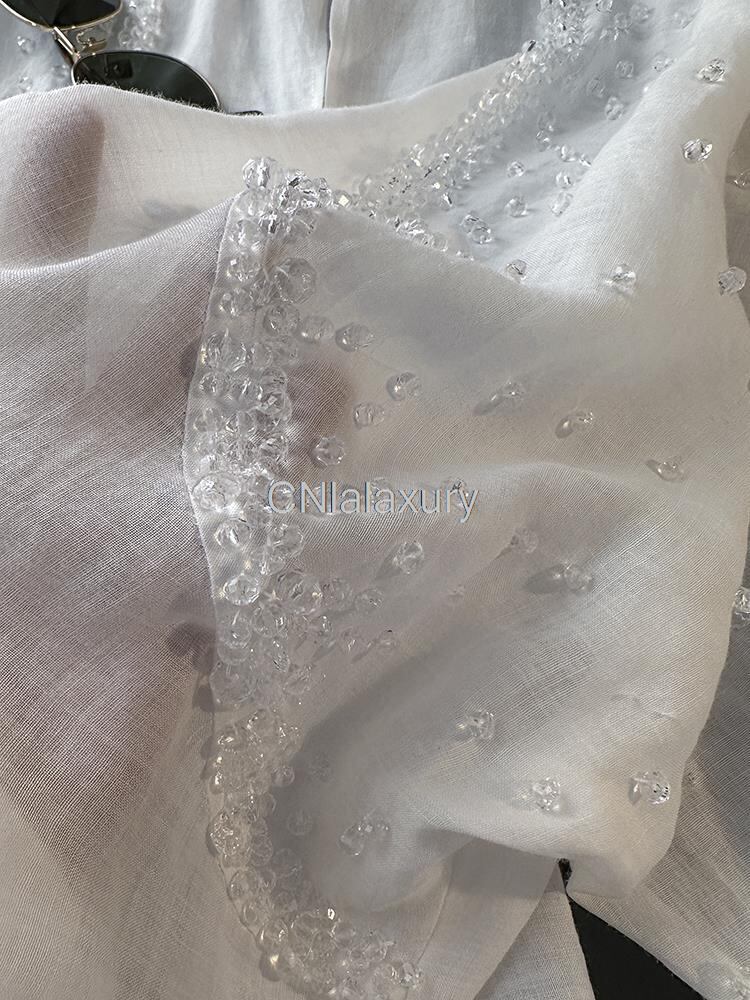 CNlalaxury 春夏レディースロングスリーブラウンドネックビーズルーズシャツソリッド気質ブラウスシックトップス 長袖 スプリング 春物 サマー 夏物 Oネック ソリッドカラー