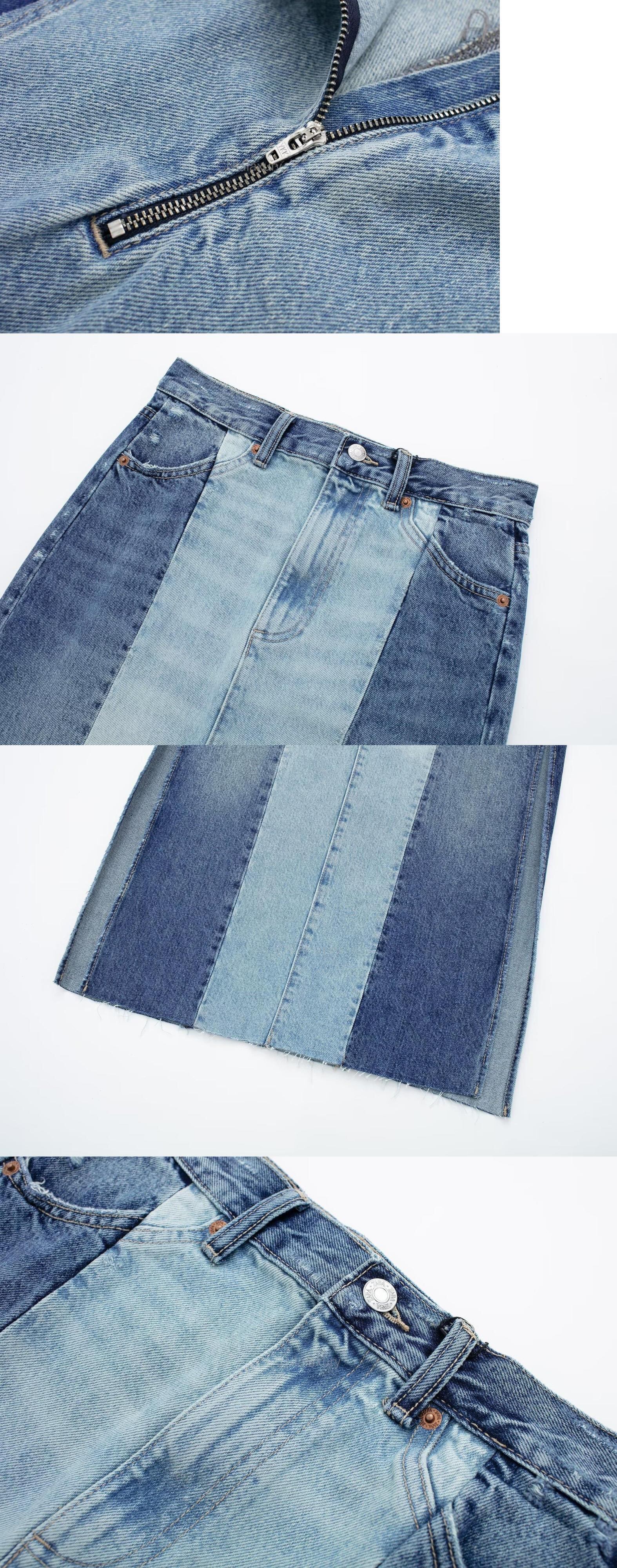 CNlalaxury 春夏パッチワークデニムノースリーブベスト + ハーフスカートスリムスーツシックデニムセット スプリング 春物 サマー 夏物