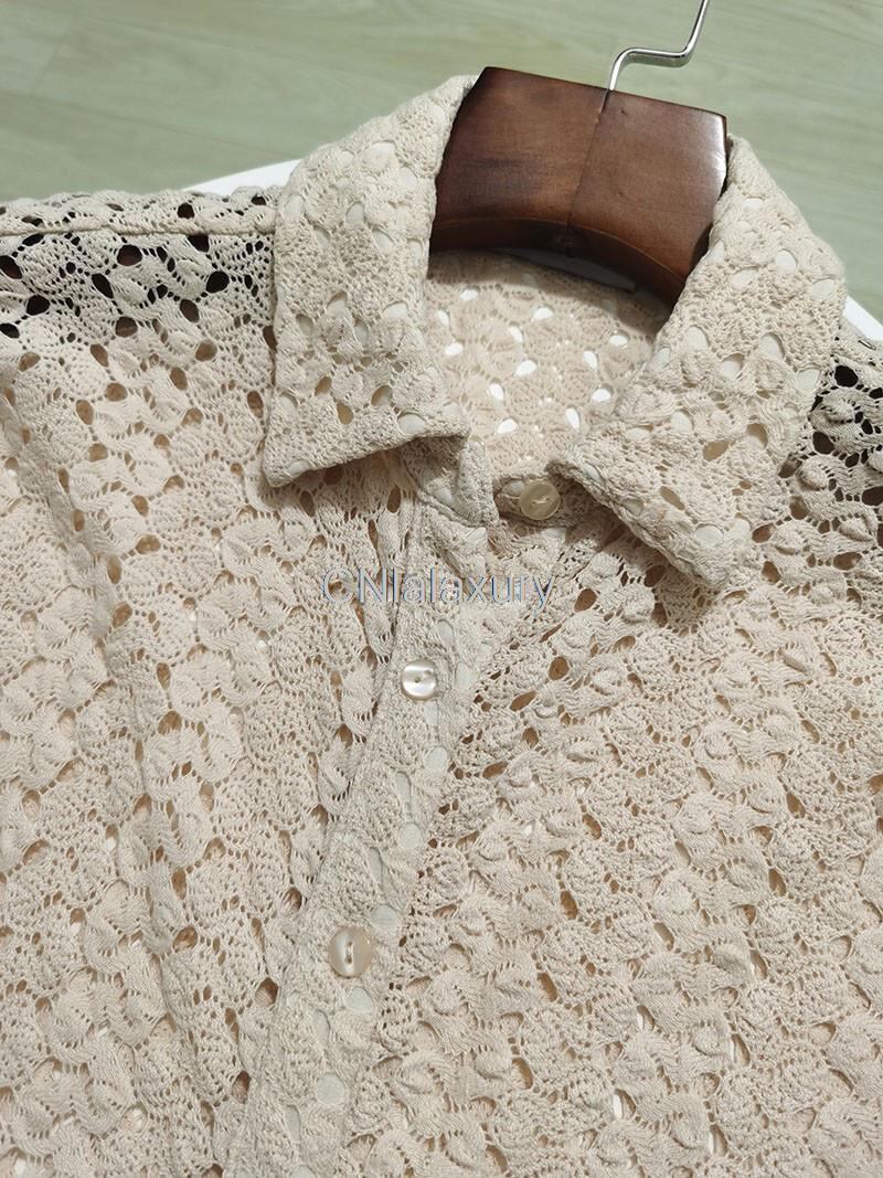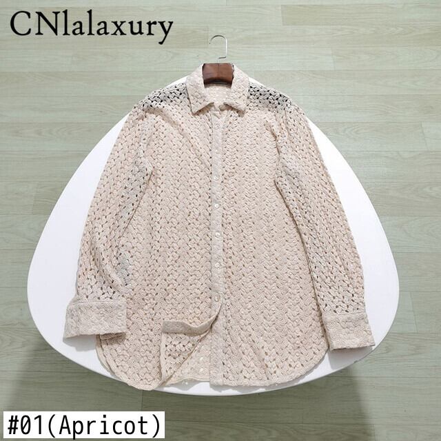 CNlalaxury 春夏ラペル刺繍レースかぎ針編みニットシャツルーズブラウス万能トップスシック スプリング 春物 サマー 夏物