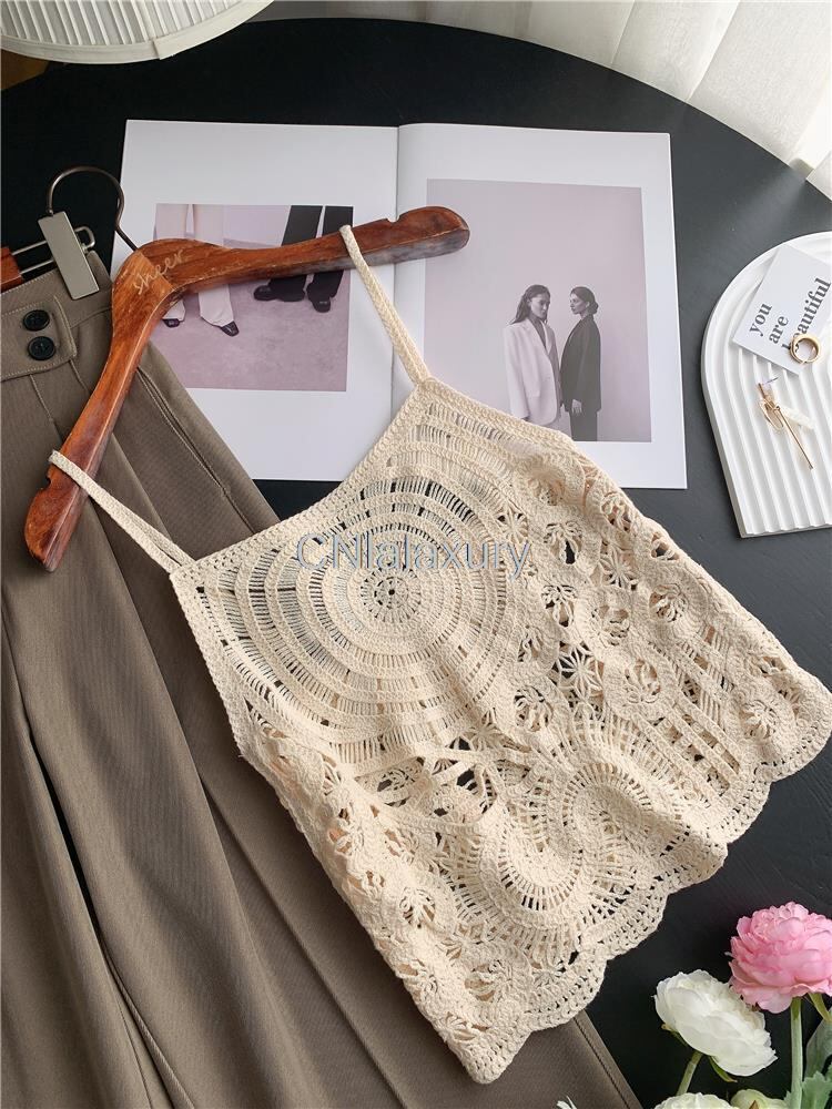 CNlalaxury 春夏中空ニットレースサスペンダーベストシンプルトップスシックタンク スプリング 春物 サマー 夏物